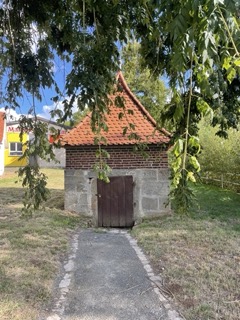 We were incredibly touched by the warm welcome and the various experiences our hosts organized for us. They spent a day and a half with us, giving us tours and helping us connect with the history and the stories of our family in the tiny town of Spangenberg. There are no Jews left in Spangenberg and the Jewish monuments are quite dilapidated at this point. However, we went to the Jewish cemetery where my great, great grandfather is buried. We visited the Mikva which is filled with dirty, stagnant water now, and we walked by the building that used to be the synagogue, but is now a private home. It was hard to tell from the front that it was ever a synagogue, and as we stood there trying to picture what it may have looked like, a neighbor of the synagogue invited all 30 of us to walk through his home and into his back yard where we could get a better view of some of the original design on the synagogue. He had read about our visit in the local paper.